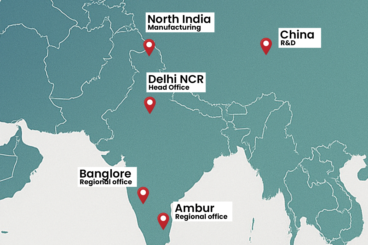 We are based out of India with offices in Bangalore & Delhi NCR. Our primary development centre is in Jinjiang, China & local development centres are in Gurgaon & Ambur (near Chennai), India. Our Manufacturing happens mostly in India. However, we can source and supply from China as well.